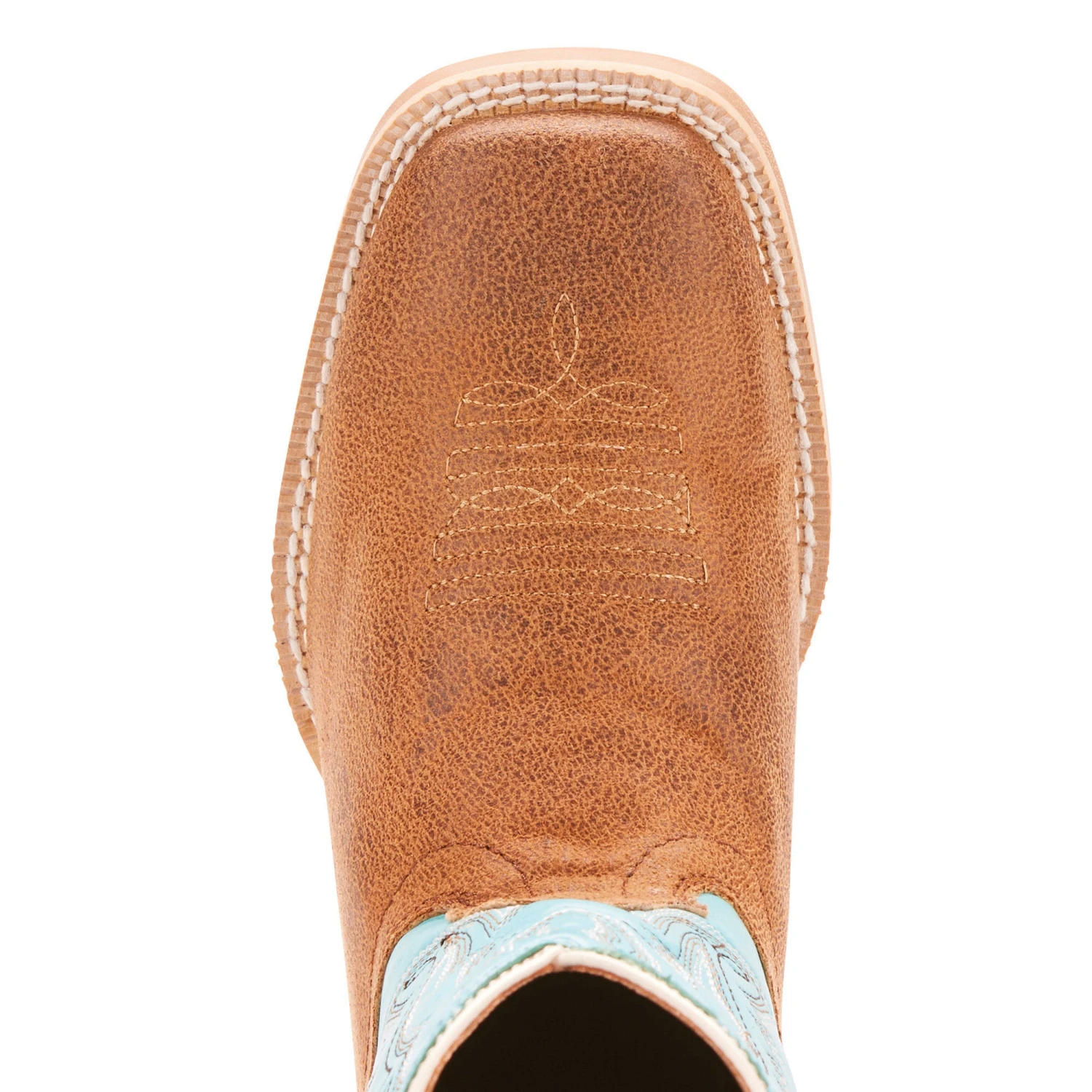 These kid’s boots from Ariat feature a bustin blue shaft color with a tan toe! They will keep your kiddo’s feet comfort all day long with the 4LR footbed! The best thing about these boots is that they have a removable Booster Bed for tiny growing feet!