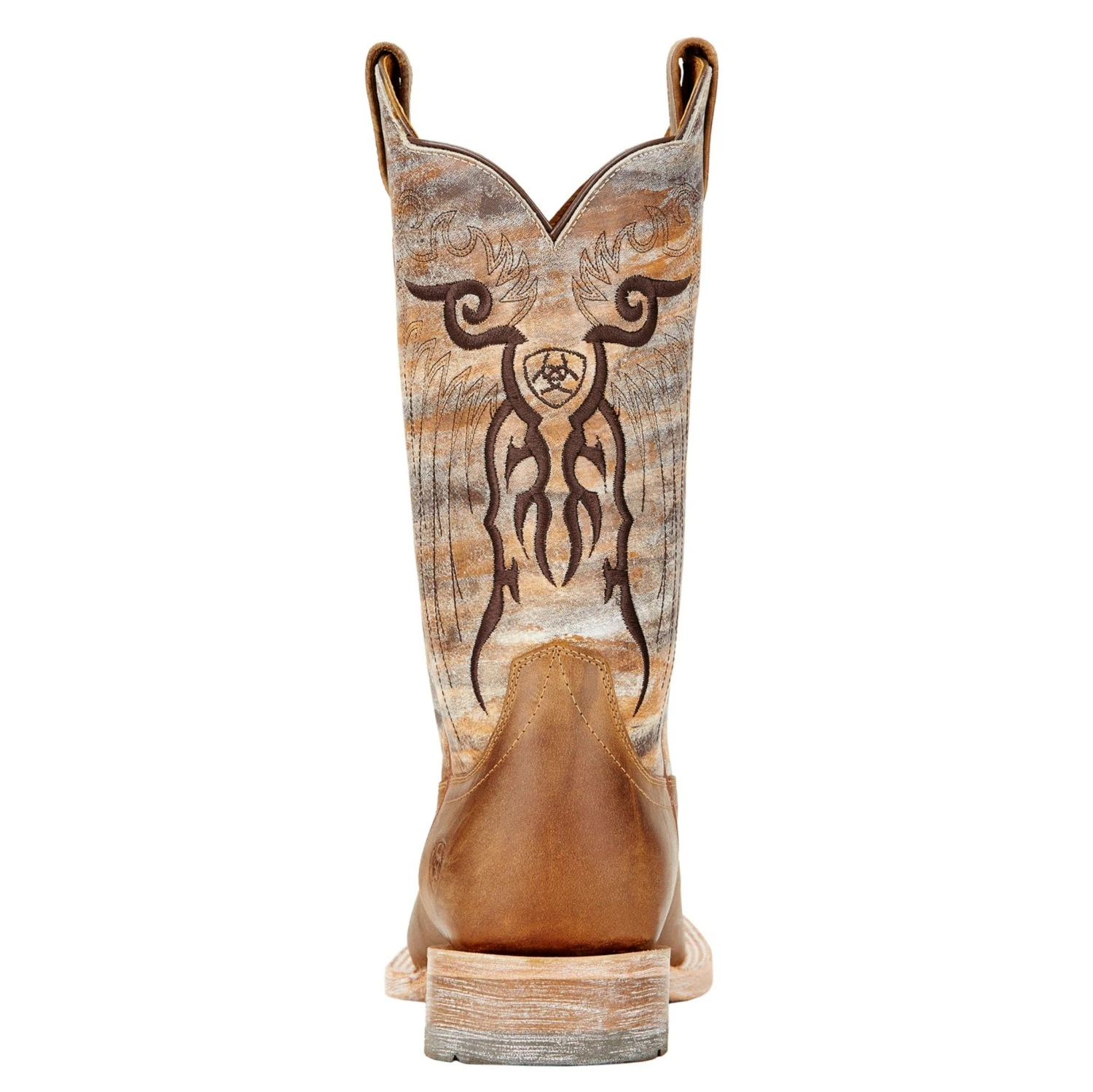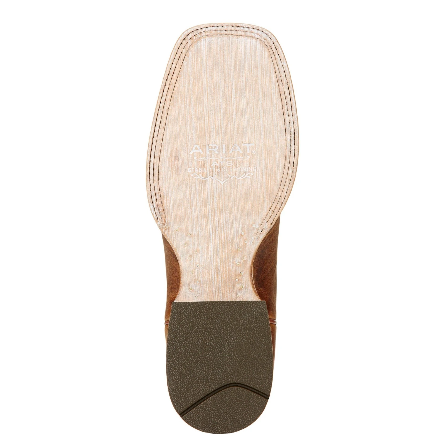 This premium full grain leather boot from Ariat features a dust devil tan brown and stunning marble color! It features the ATS footbed that provides advance stability and performance! The white leather sole will leave you feeling like a million dollars!