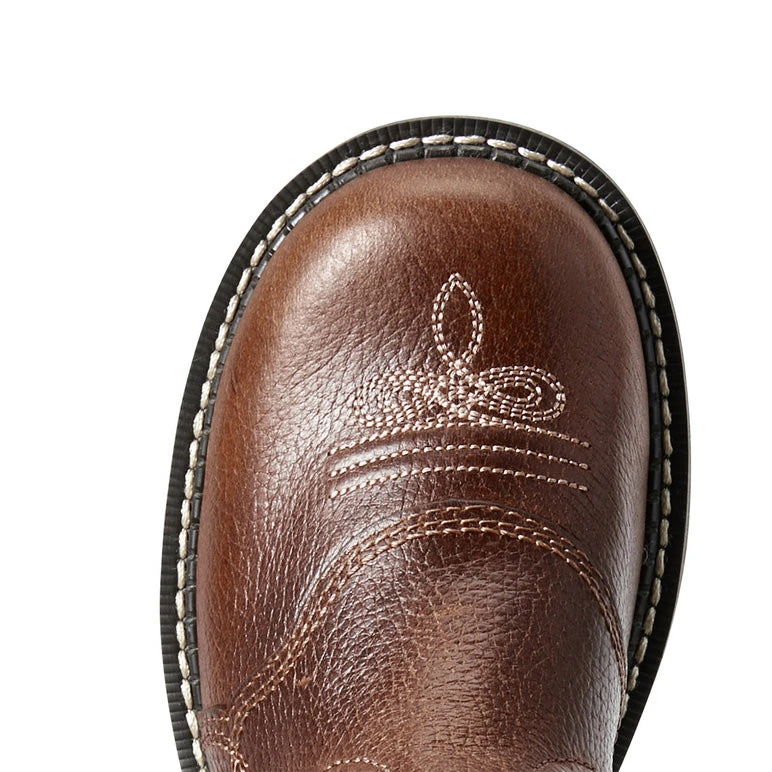 This women’s Fatbaby boot from Ariat features copper and brownie colors throughout! Fatbaby boots are great for cowgirl’s who prefer a round toe and a shorted shaft height!